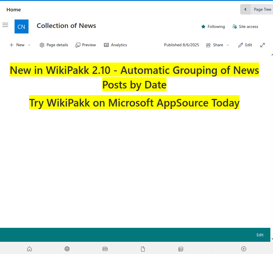 The WikiPakk page tree and breadcrumb can be added to any site, once it has been installed in the tenant. This video shows how to add WikiPakk to a SharePoint site.